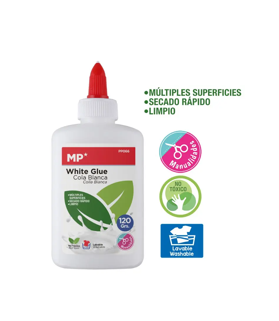 Cola blanca de 120g. Para múltiples superficies, secado rápido y limpio.