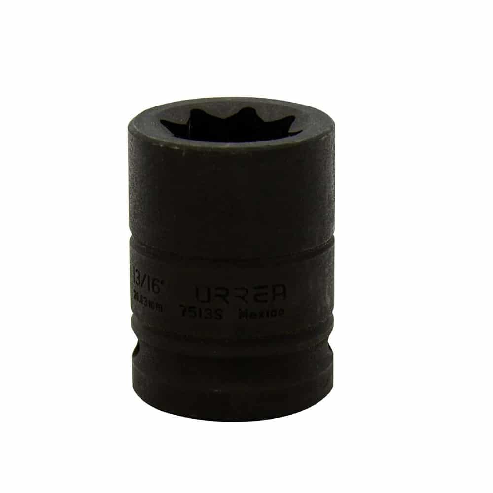 Dado de impacto 3/4″ 8 puntas 13/16″ Urrea-Dado de impacto cuadro 3/4″ 8 puntas medida 13/16″ geometría lobular super-drive, acabado fosfatado ESPECIFICACIONES TECNICAS: -Diámetro Exterior De Boca: 1 5/8″-Longitud: 3 1/16″-Medida: 13/16″-Profundidad Estría: 5/8″-Sae O Métrico: Sae-Tamaño De Impulsor: 3/4″-Tipo De Dado: Ii-Tipo De Impulsión: Cuadrado