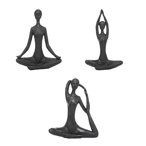 Estatuilla de resina en forma de mujer con postura yoga. Venta individual, color al azar según stock. Medida 13x6x22cm