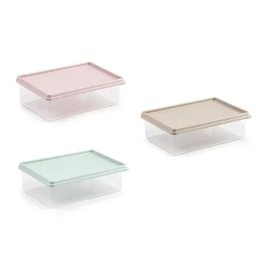Fiambrera de plástico transparente de 1L de capacidad. Resistentes a temperaturas entre -18ºC a 100ºC. Color surtido. Medida 21 x 13,5 x 6 cm