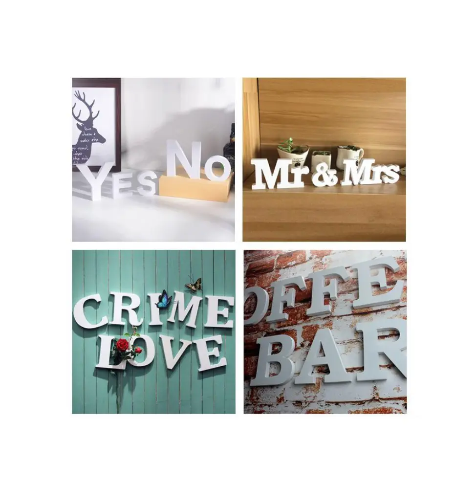 decorativo versátil que puede colgarse o apoyarse sobre un mueble. Letra blanca, medidas 8 x 11 cm.