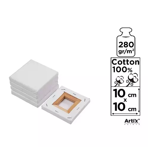 Lienzo mini 280g/m2, material de mini tela 100% algodón. Ideal para óleo y acrílica. Medida 10x10cm.