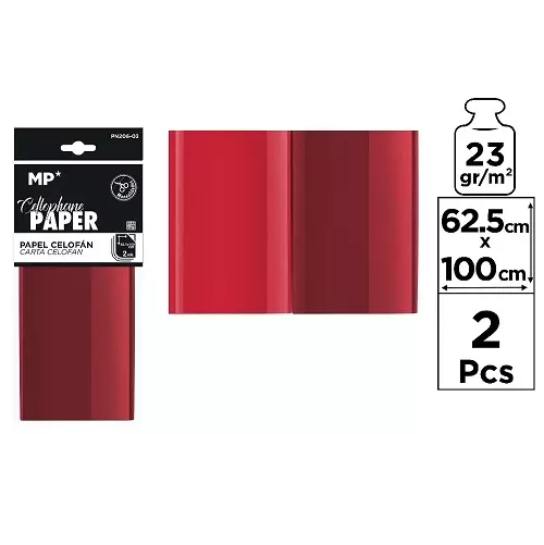 Papel celofán para manualidades de 23 g/m2. Alta transparencia y colores muy vivos. Muy manejable: ideal para envolver regalos, para floristerías, para manualidades, decoración… Pack de 2 hojas. Tamano: 62,5 x 100 cm. Color naranja oscuro.