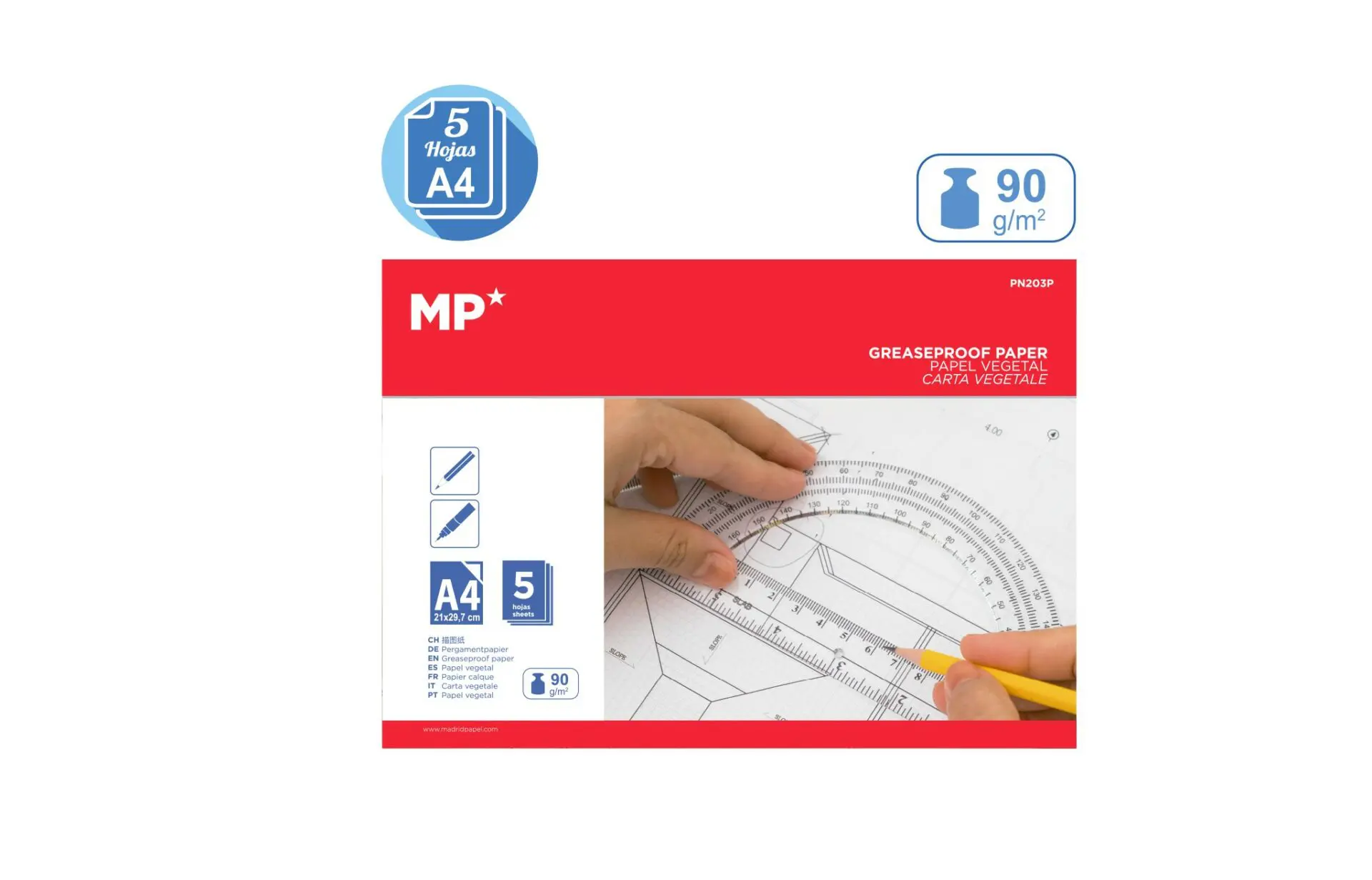 Pack de 5 hojas de papel vegetal DIN A4 de alta calidad. Gramaje de 90 g/m². De gran uso, se puede utilizar para copiar, calcar, dibujar, escribir… Ideal para hacer manualidades o diseñar nuevos proyectos.