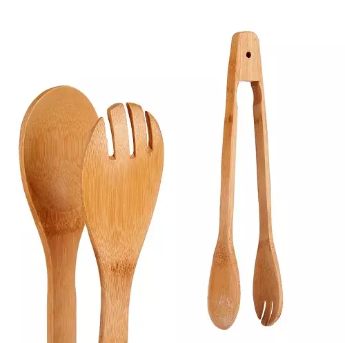 Pinza de cocina cuchara tenedor, material bambú. Medida 6 x 30 x 5 cm.